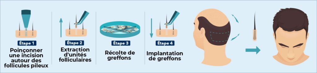 Étapes de la greffe de cheveux chez ANATOMICA CLINIC