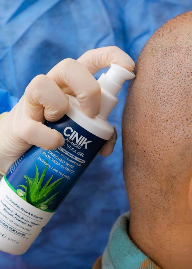 La chute des croûtes doit se faire de manière progressive et naturelle. Pour faciliter ce processus, il recommande à ses patients d’effectuer des shampooings quotidiens en utilisant la mousse nettoyante spéciale fournie par la clinique. Cette mousse est spécifiquement formulée pour nettoyer en douceur sans irriter le cuir chevelu sensible post-greffe.